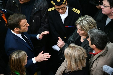 | Macron (gauche) face à d'ex-salariés de Whirlpool et au député LFI de la Somme Francois Ruffin, en présence de la préfète Muriel Nguyen, à Amiens, le 22 novembre. Photo : AFP/VNA/CVN |
