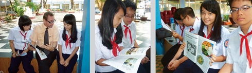 | Hervé Fayet avec ses élèves francophones à l’école française Collette de Hô Chi Minh-Ville. Photo : HF/CVN |