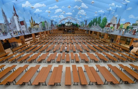 | Photo prise le 16 septembre 2016 montrant des préparatifs pour la Fête de la bière à Munich, qui n'aura pas lieu en 2020 à cause des risques liés au coronavirus |