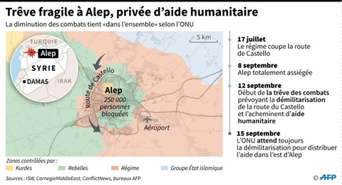 L’ONU espère profiter de la trêve pour distribuer vendredi 16 septembre de l’aide humanitaire dans la ville syrienne d’Alep ravagée par la guerre chez les 250.000 habitants des quartiers rebelles assiégés, qui manquent de tout.