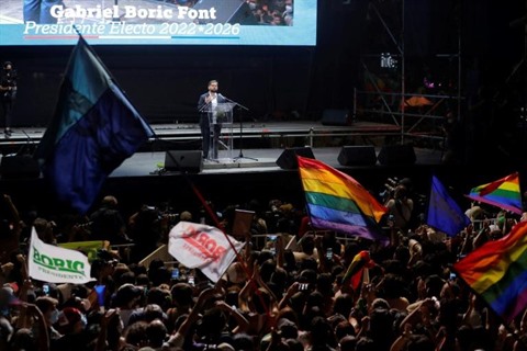 | Gabriel Boric devant ses partisans à la suite de sa victoire au second tour de l'élection présidentielle au Chili, à Santiago, le 19 décembre. |