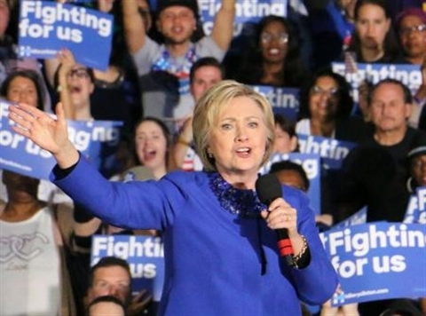 S'exprimant à Philadelphie, en Pennsylvanie, où aura lieu la convention démocrate en juillet, Hillary Clinton a affiché la confiance des vainqueurs, entrant en scène au son de Eye of the Tiger, la chanson du film Rocky, et tendant la main aux électeurs de Bernie Sanders.