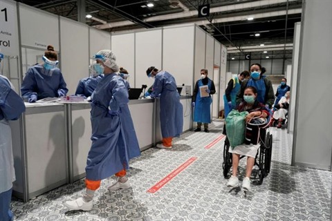 | Photo fournie par la municipalité de Madrid le 31 mars de personnel médical travaillant dans un hôpital temporaire pour s'occuper des cas de COVID-19, érigé dans le centre de Madrid |