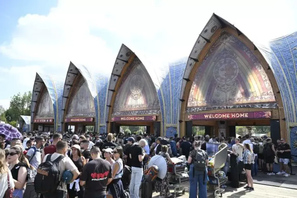 | Des personnes font la queue pour entrer au camping DreamVille du festival de musique électronique Tomorrowland, au lendemain de la destruction de sa scène principale par un incendie, le 17 juillet 2025 à Boom, en Belgique. |