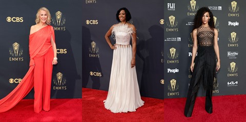 | De gauche à droite : Catherine O'Hana, Renee Elise Goldsberry, et MJ Rodriguez ont choisi la marque Công Tri pour leur apparition à la 73e cérémonie des Emmy Awards, à Los Angeles. |