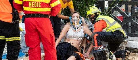 Dans une autre épreuve, il s'agit de secourir un ouvrier soudeur brûlé aux avant-bras qui, après une chute de trois mètres, atterrit près de barils d'essence. "Et dans chaque scénario, il y a un traumatisme visible, et un autre qu'il faut trouver", glisse le juge-arbitre irlandais, Mark Brennan.