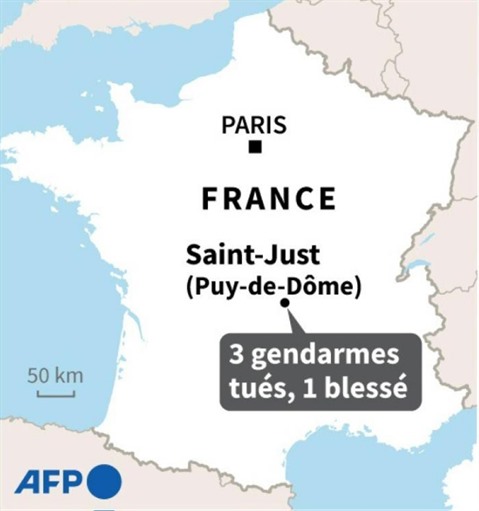 | Carte situant le Puy-de-Dôme, où trois policiers ont été abattus après avoir été appelés pour des violences intra-familiales. |