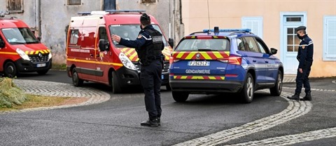 | Un gendarme fait signe à des véhicules des pompiers à Saint-Just, le 23 décembre. |