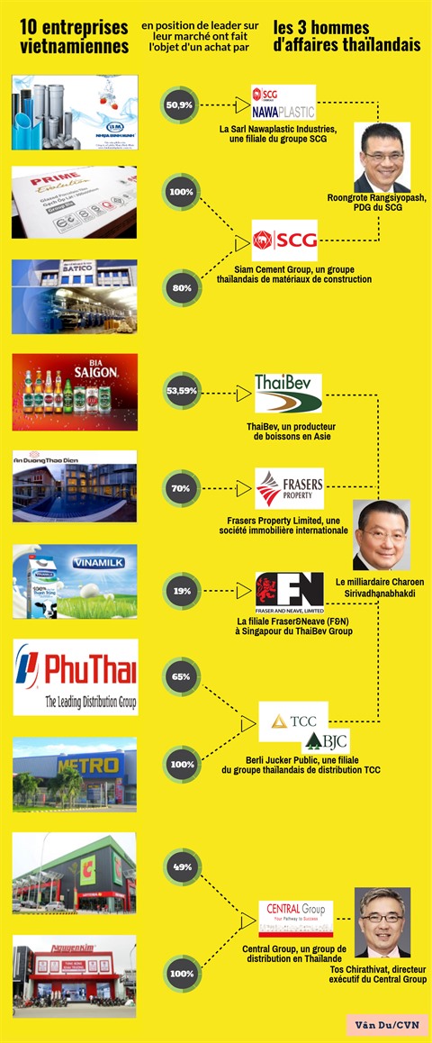 Une série de marques vietnamiennes issues de divers secteurs, allant des matériaux de construction aux biens de consommation, ont fait l’objet d’acquisition par des géants étrangers. Parmi ceux-ci, des groupes thaïlandais s’intéressent particulièrement au marché vietnamien.
