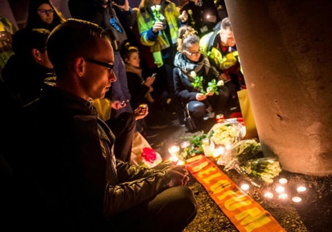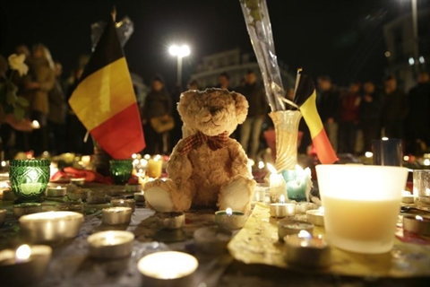 | Hommage aux victimes des attentats de Bruxelles, le 23 mars à Zaventem en Belgique. |