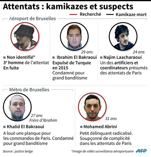 | Attentats de Bruxelles : les kamikazes et suspects recherchés. |