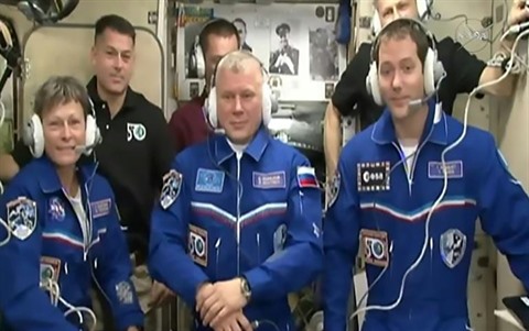 "Nous vous regardons, et nous ne pourrions pas être plus fiers", a déclaré Charles Bolden, administrateur de la NASA, en s'adressant à l'équipage de l'ISS, désormais au nombre de six avec l'arrivée de Thomas Pesquet, du Russe Oleg Novitski et de l'Américaine Peggy Whitson.