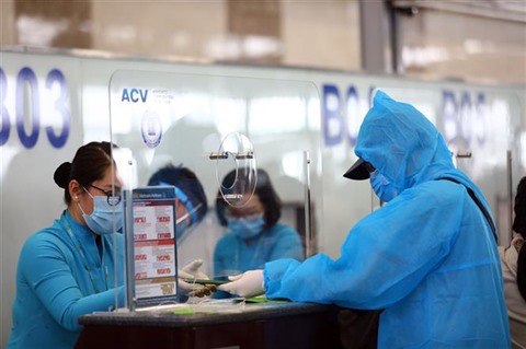 | Les passagers à l'aéroport international de Nôi Bài. |