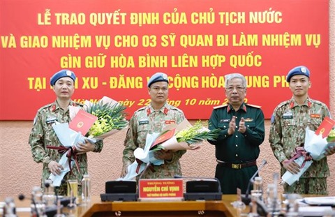 Les lieutenants-colonels Nguyên Ba Hung et Ly Thanh Tam partiront en mission au Soudan du Sud en tant qu'observateurs militaires tandis que le major Dào Duy Tùng occupera le poste d’officier de consultation chargé de l'analyse des informations à la mission de l’ONU en République centrafricaine.