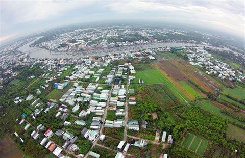| Vue aérienne du delta du Mékong . |
