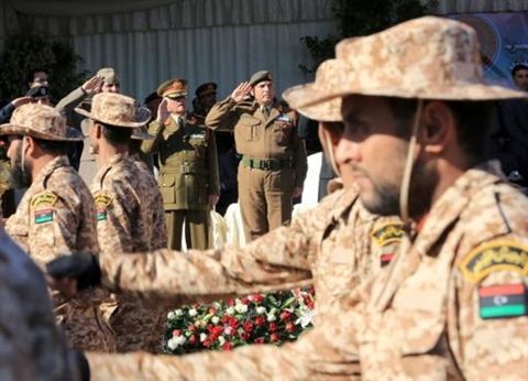 | Défilé de soldats lybien à Tripoli. |