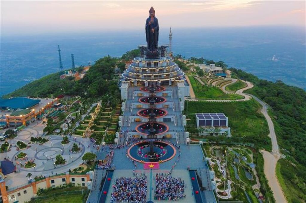 Des milliers de pèlerins viennent ainsi se recueillir dans l’ancien ensemble de pagodes Bà dédié à la légendaire Linh Son Thanh Mâu Bô Tat. Le complexe spirituel au sommet impressionne particulièrement les visiteurs avec la statue en bronze nommée Bà Tây Bô Dà Son - la plus haute statue de la déesse de la Miséricorde en Asie, ainsi qu’une grande statue de Maitreya en grès, parmi les plus grandes au monde, composée de 6.688 blocs de grès naturel.