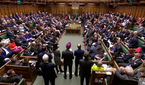 | Une photo de la Première ministre britannique Theresa May diffusée par le Parlement le 29 mars 2019. |