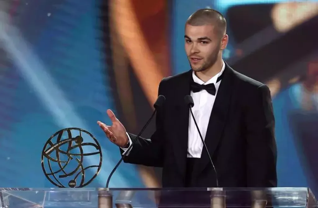 | Le gardien de Lille Lucas Chevalier élu meilleur gardien de Ligue 1, lors de la cérémonie des trophées UNFP, le 11 mai à Paris. |