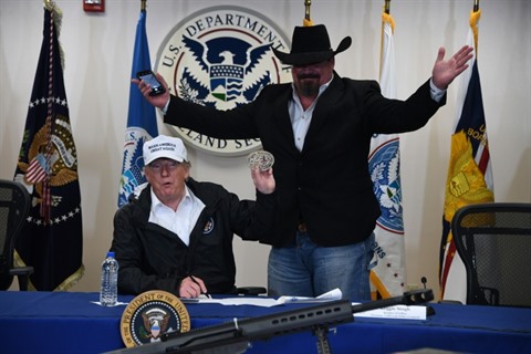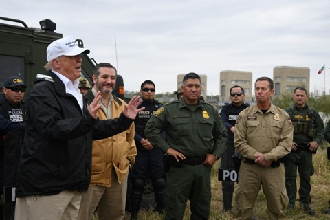 | Le président américain Donald Trump (gauche) au bord du Rio Grande à McAllen (Texas) le 10 janvier. |