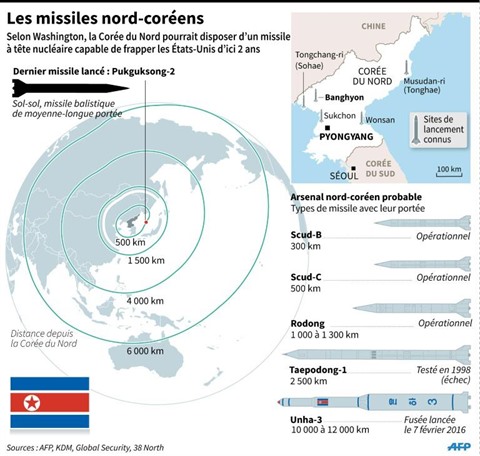 Pour l'heure, Pyongyang ne semble avoir ni réussi à construire des missiles d'une portée suffisante pour atteindre le territoire américain ni à intégrer un engin atomique sur un lanceur.
