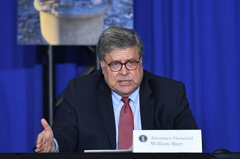 | Le ministre américain de la Justice, Bill Barr, s'exprime lors d'un événement, le 1er septembre aux États-Unis. |