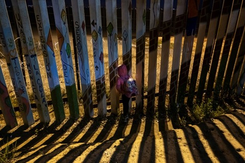 | Une fillette du Honduras observe la frontière entre le Mexique et les États-Unis à Playas de Tijuana, dans l'État de Baja California au Mexique, le 2 décembre. |