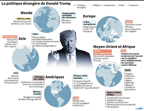 C'est déjà au nom de son slogan "America First" que le milliardaire républicain avait remis en cause plusieurs engagements multilatéraux de la première puissance mondiale, à commencer par l'Accord de Paris sur le climat.