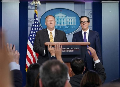 | Le secrétaire d'État américain Mike Pompeo (à gauche) et le secrétaire américain au Trésor, Steven Mnuchin, à Washington le 10 septembre. |