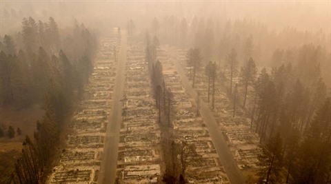 | Un quartier de Paradise, en Californie, ville quasiment rayée de la carte par le gigantesque incendie "Camp Fire", le 15 novembre. |