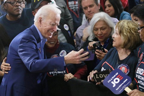 | Joe Biden, le 22 février 2020 à Las Vegas. Le candidat démocrate a annoncé jeudi 27 août qu'il allait reprendre la campagne de terrain dans les États-clés. |