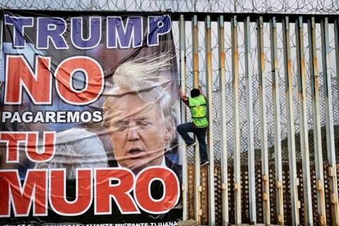 | Une affiche disant "Trump, nous ne paierons pas pour ton mur", le 2 février 2020, à Playas de Tijuana au Mexique. |