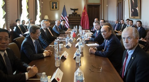 | La séance de négociation entre la Chine (gauche) et les États-Unis sur leurs tensions commerciales, le 30 janvier. |