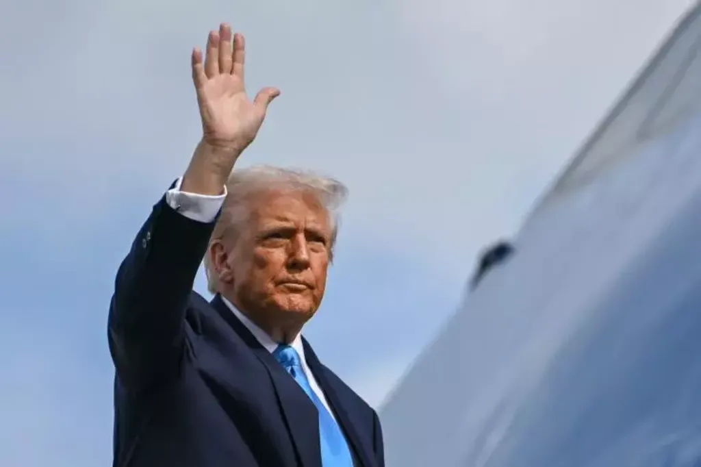 | Le président américain Donald Trump embarque à bord d'Air Force One, le 29 octobre 2025 à l'aéroport de Tokyo Haneda. |