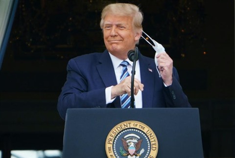 | Le président américain Donald Trump s'exprime depuis le balcon de la Maison Blanche devant les sympathisants, le 10 octobre 2020. |
