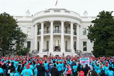 | Les sympathisants du président américain Donald Trump devant la Maison Blanche, le 10 octobre 2020. |