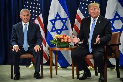 | Le président des États-Unis, Donald Trump (droite) et le Premier ministre israélien Benjamin Netanyahu, en marge de l'Assemblée générale de l'ONU, à New York, le 26 septembre. |