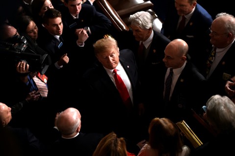 | Donald Trump à l'issue de son discours sur l'état de l'Union devant le Congrès. |