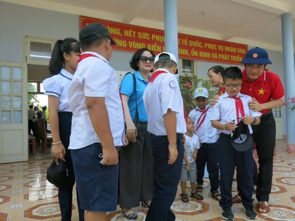 | Nguyên Thai Hoc, vice-président de la Commission centrale des affaires intérieures, avec des enfants sur l'île de Song Tu Tây. |