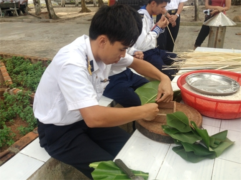 | Les bánh chung à Truong Sa sont enveloppés dans des feuilles de badamier. |