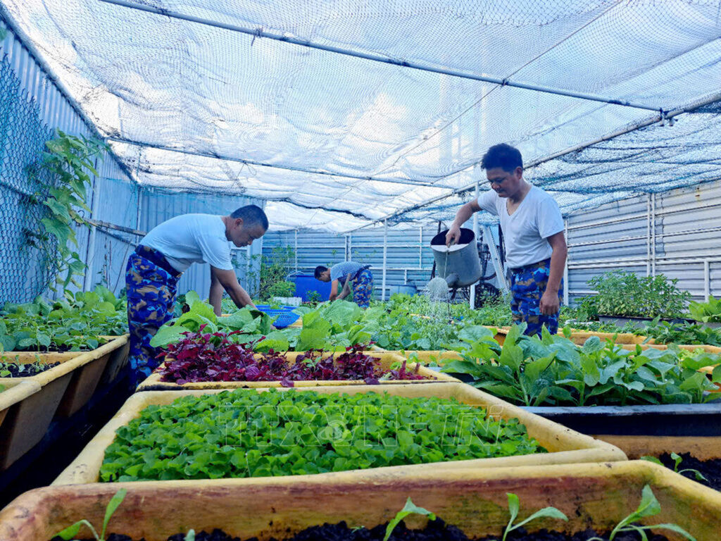 Même les îlots les plus arides, comme Da Thi, s’adaptent. L’eau douce y provient exclusivement des pluies, recueillies dans des citernes. Les légumes sont cultivés dans des bacs mobiles que l’on déplace selon les saisons. "Chaque goutte est précieuse", souligne le lieutenant Mai Vu Thanh Nguyên. En 2024, la production locale a atteint près d’une tonne de légumes et 500 kg de pousses de soja, améliorant nettement l’ordinaire des soldats.