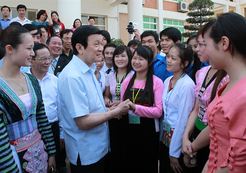 | Le président Truong Tân Sang rencontre les enseignants et les étudiants de l'Université de Tây Bac. |