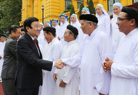 | Le président Truong Tân Sang rencontre le 13 novembre des dignitaires de l'Église caodaïste du Vietnam, le 13 octobre à Hanoi. |