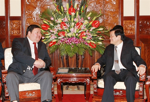 | Le président Truong Tân Sang (droite) a reçu, le 24 avril à Hanoi, l'ambassadeur de Mongolie, Palam Sundev |
