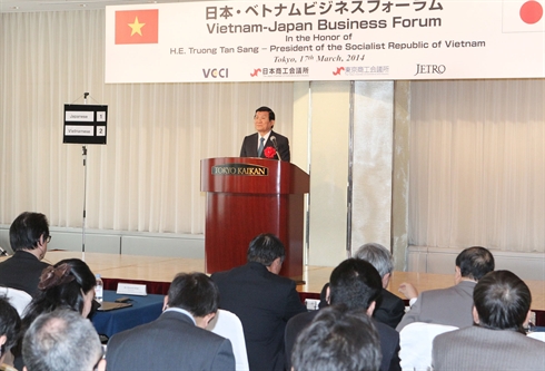 | Le président du Vietnam, Truong Tân Sang, prend la parole au forum économique Vietnam - Japon, le 17 mars à Tokyo. Photo : Nguyên Khang/VNA/CVN |