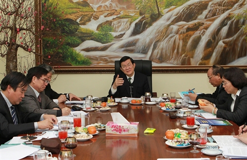 | Le président Truong Tân Sang a travaillé le 30 janvier à Hanoi avec les responsables de l'Université du droit de Hanoi et de celle de Hô Chi Minh-Ville. |