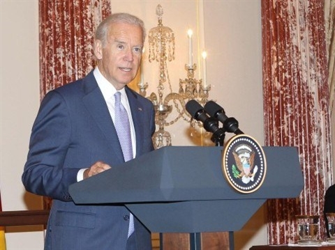| Le vice-président Joe Biden extrait deux vers du Truyên Kiêu en recevant en juillet 2015 à Washington le leader du PCV Nguyên Phu Trong. |