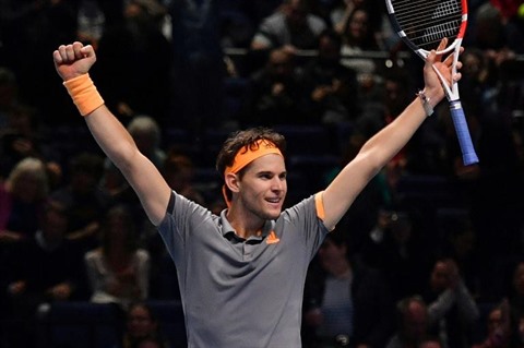 | L'Autrichien Dominic Thiem après sa qualification pour la finale du Masters, le 16 novembre à Londres. |