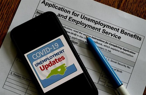 | Le logo d'une application d'aide aux chômeurs américains, le 8 mai. |