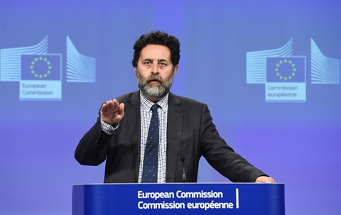 | Ignacio Garcia Bercero, négociateur en chef de l'Union européenne lors d'une conférence de presse, après une session de négociation du traité à Bruxelles sur le traité de libre-échange le 15 juillet à Bruxelles. |